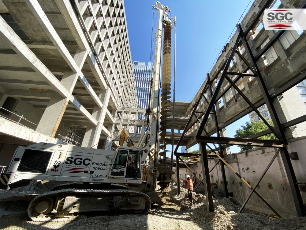 SGC TRAVAUX SPECIAUX a été présent dans le cadre d’un projet d’envergure, pour le confortement d’un ancien immeuble situé dans le quartier de la Part-Dieu à Lyon (69).